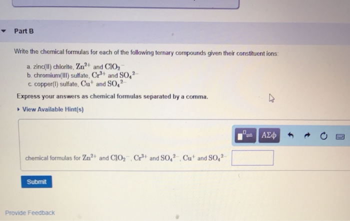 Solved Part B Write The Chemical Formulas For Each Of The Chegg Com